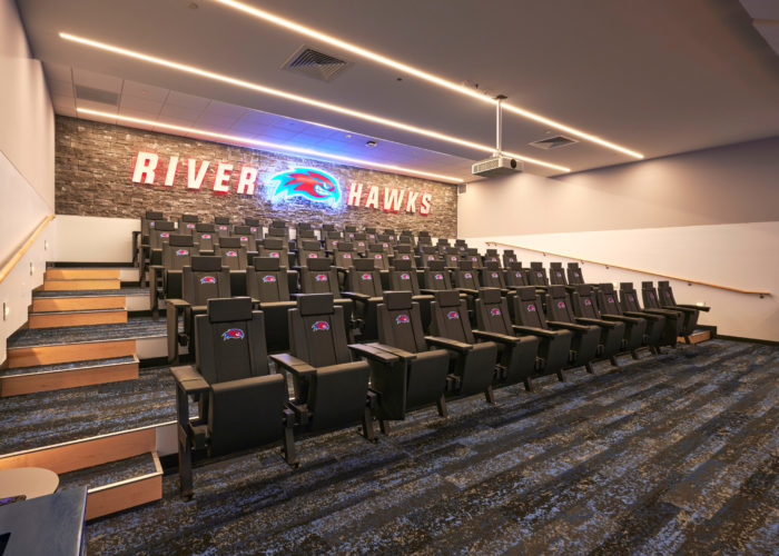 The 6-story, wedge-shaped expansion is located to the east of the existing library and physically connected by a linear “core” containing an atrium, glass floor bridges, and vertical circulation elements. Each floor contains a large reading room overlooking the main quad with smaller scale study and support rooms extending to the south. The expansion presented an opportunity to dramatically increase daylighting to the interior. The architectural language of the addition is comprised of large areas of transparent curtain wall and translucent channel glass that connect to a new elemental, fractured stone wall along the east. The new materials are set in contrast to the existing dense/opaque architecture and establish a much more open and inviting identity for the library.