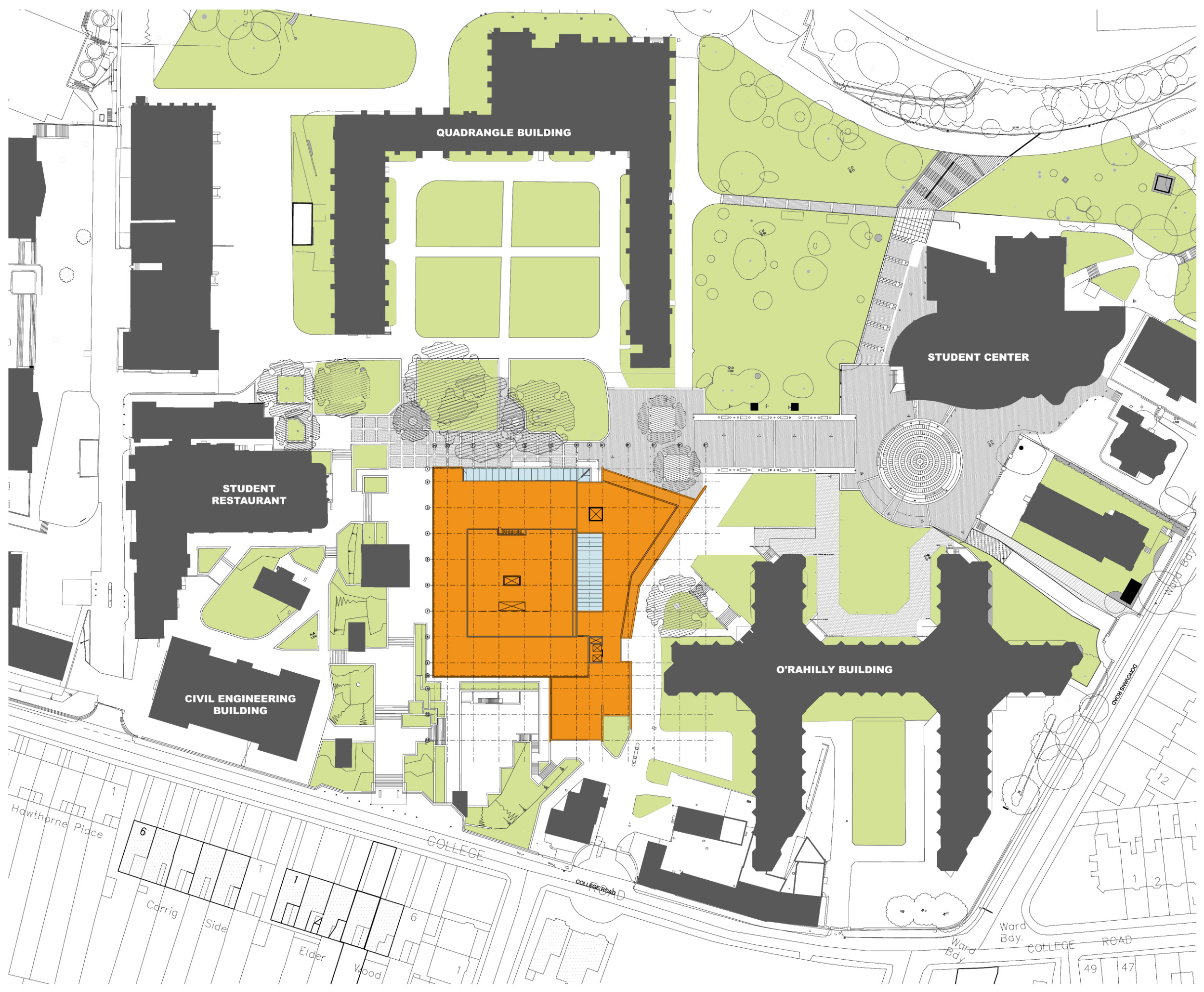University College Cork, Ireland’s leading research institute, is also one of its oldest institutions of higher learning, founded in 1845. Boole library is located at the center of the University College Cork campus. Facing the main quad, the original Boole Library is a dark precast concrete building with narrow horizontal strip windows, completed in 1974.