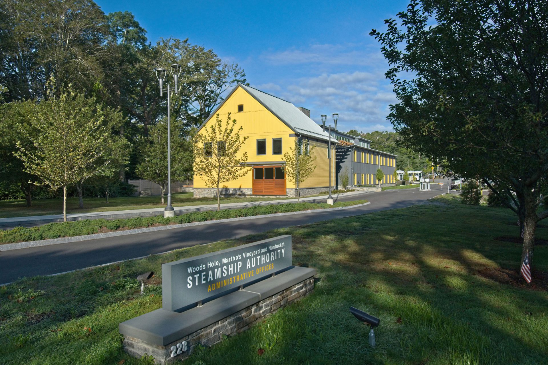 As part of the 8-year long, phased reconstruction project for the Woods Hole Ferry Terminal, this first project replaces the Steamship Authority’s (SSA) existing tightly-packed offices above the existing industrial Woods Hole terminal building with new, purpose-built office building, located at the Authority’s bus transfer facility near Falmouth’s main Historic District.