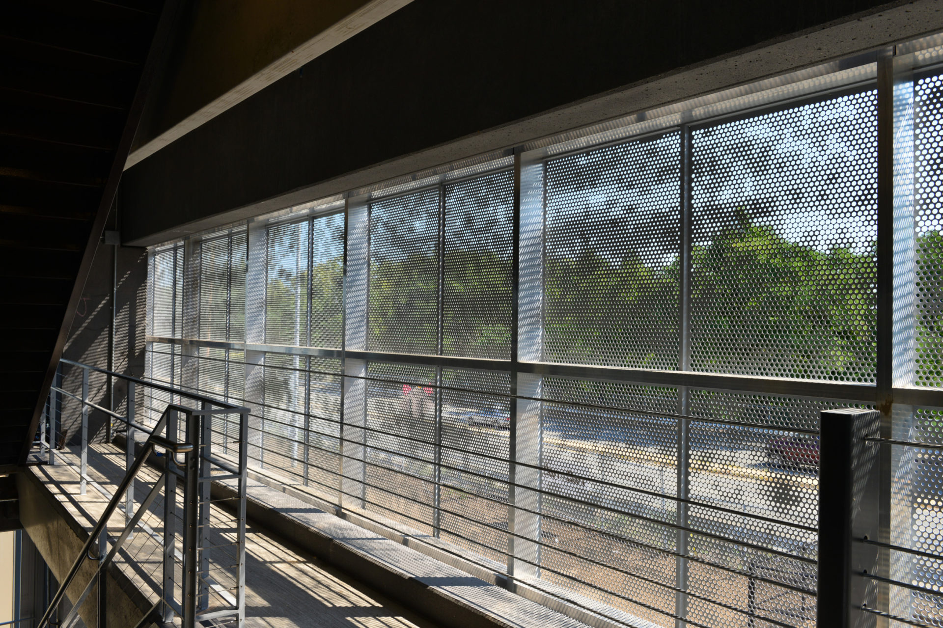The facility accommodates 620 cars on 6 levels and is designed to visually extend the color and material palette of the buildings nearby through the use of terra cotta tile walls and aluminum louver blades. The structural system has no raised spandrel beams, which allows the garage to feel exceptionally open and transparent from within.